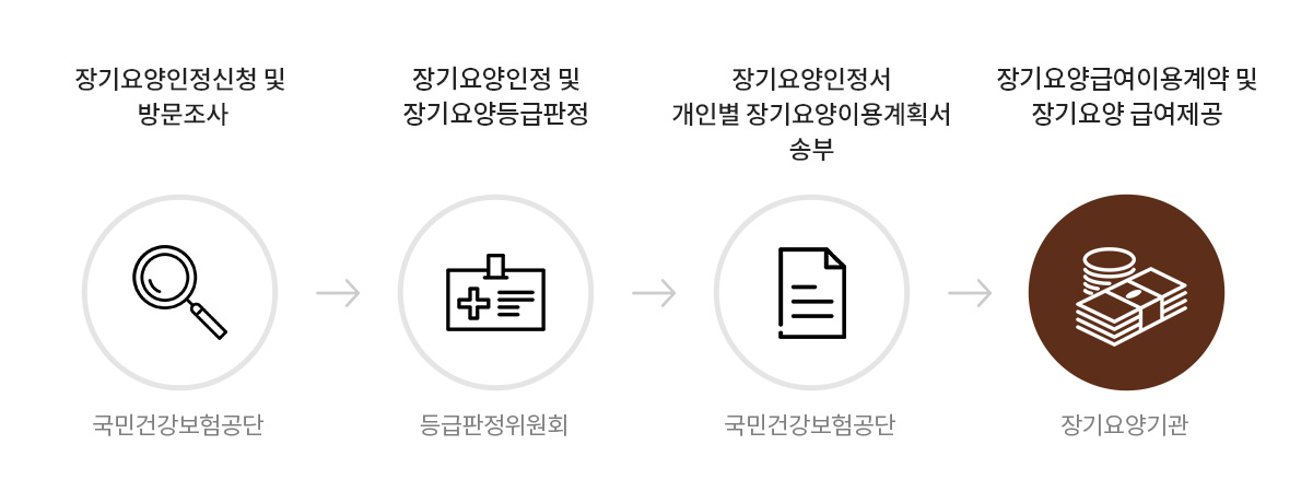 | 방문간호 | 간호(조무)사 또는 치과 위생사가 의사.한의사 또는 치과의사의 지시에 따라 수급자의 가정 등을 방문하여 간호. 진료의 보조, 요양에 관한 상담 또는 구강위생을 제공하는 급여 |